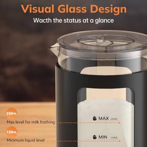 Featuring a transparent glass body, anti‑scald handle, and drip‑free spout, this frother ensures safe and smooth pouring. Its automatic shut‑off function provides reliable temperature control for worry‑free operation.